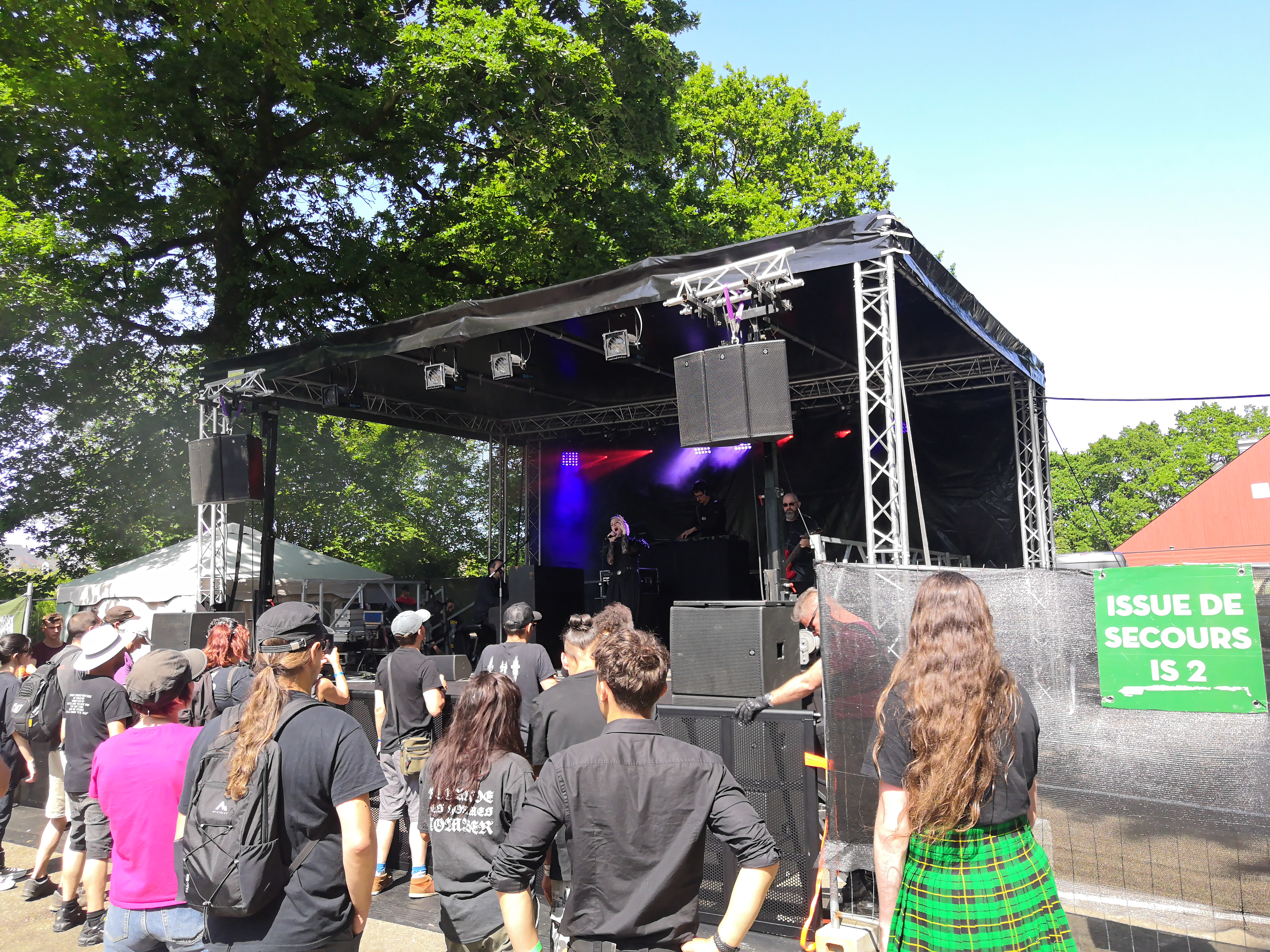 L'écoute à la maison m'avait fait lever un sourcil. Même si je trouvais la musique FauxX trop chargée, il y avait une lourdeur qui me plaisait bien dans cette espèce d'indus darksynth un peu post-black-hardcore-chépaquoi. Et a raison. Ça a été ma petite claque inattendue de la journée. Tantôt lourd, tantôt atmosphérique, je n'ai pas vu le set passer et ça, c'est généralement bon signe.