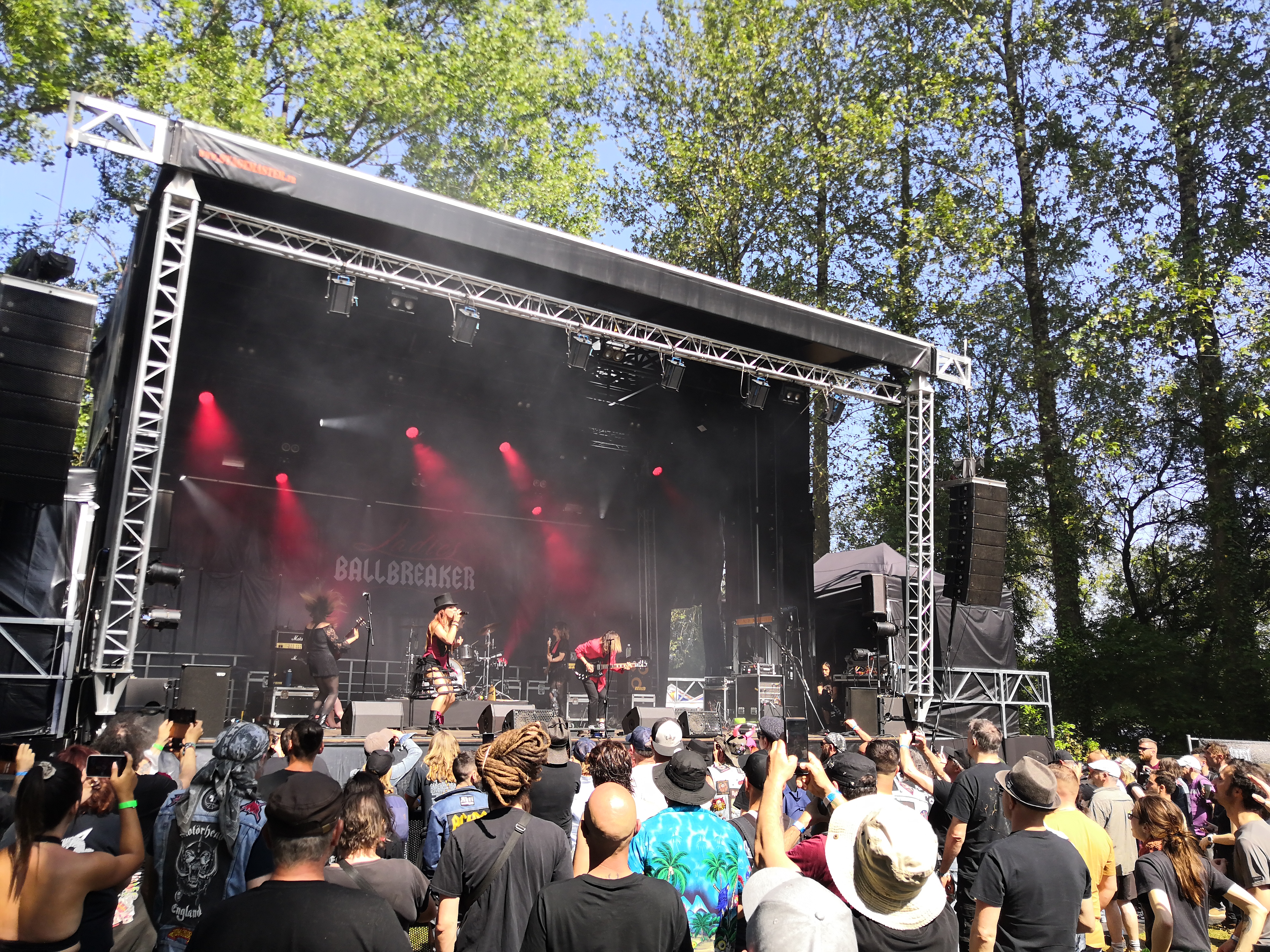Déjà, le site est chouette. A deux pas du lac du Korong, le site est ombragé. Les deux scènes jouent en alternance, ce qui permet de tout voir. Il n'y a pas trop de monde, même aux moments les plus blindés de la journée c'est resté plutôt contenu. Pas de files d'attente, un site contenu. Ça fait du bien et ça rappelle presque les débuts du Motocultor Festival. L'ombre en plus.
